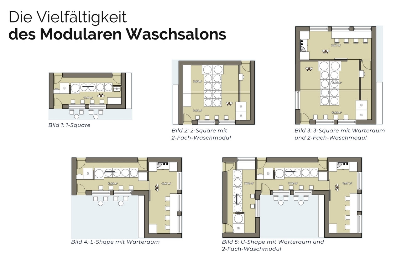 Erleben Sie Wäschewaschen auf neuem Niveau! Neben modernen Waschmaschinen und Trocknern, zeichnet sich die Inneneinrichtung durch klare, saubere Linienführung und den Einsatz moderner Materialien aus. Diese erzeugen eine warme, hygienische und einladende Atmosphäre. Ebenfalls stehen weitere Grundrisse und Einrichtungsmöglichkeiten zur Verfügung, welche ein Warteraum mit Speise- und Getränkeautomaten bereitgestellt werden. Somit werden auch die alltäglichen Bedürfnisse abdecken.